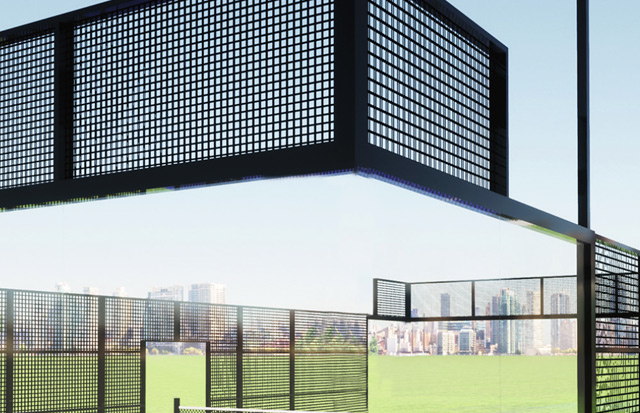 Vervaardigd met warmgewalste constructiestaalprofielen van verschillende afmetingen zoals vereist door de installatie. De bekleding van de structuur wordt uitgevoerd met cellulaire polycarbonaatplaten met variabele dikte, afhankelijk van het project en de situatie. Dit materiaal geeft het deck ideale kenmerken voor het beoefenen van deze sport, getest door spelers van hoog niveau.